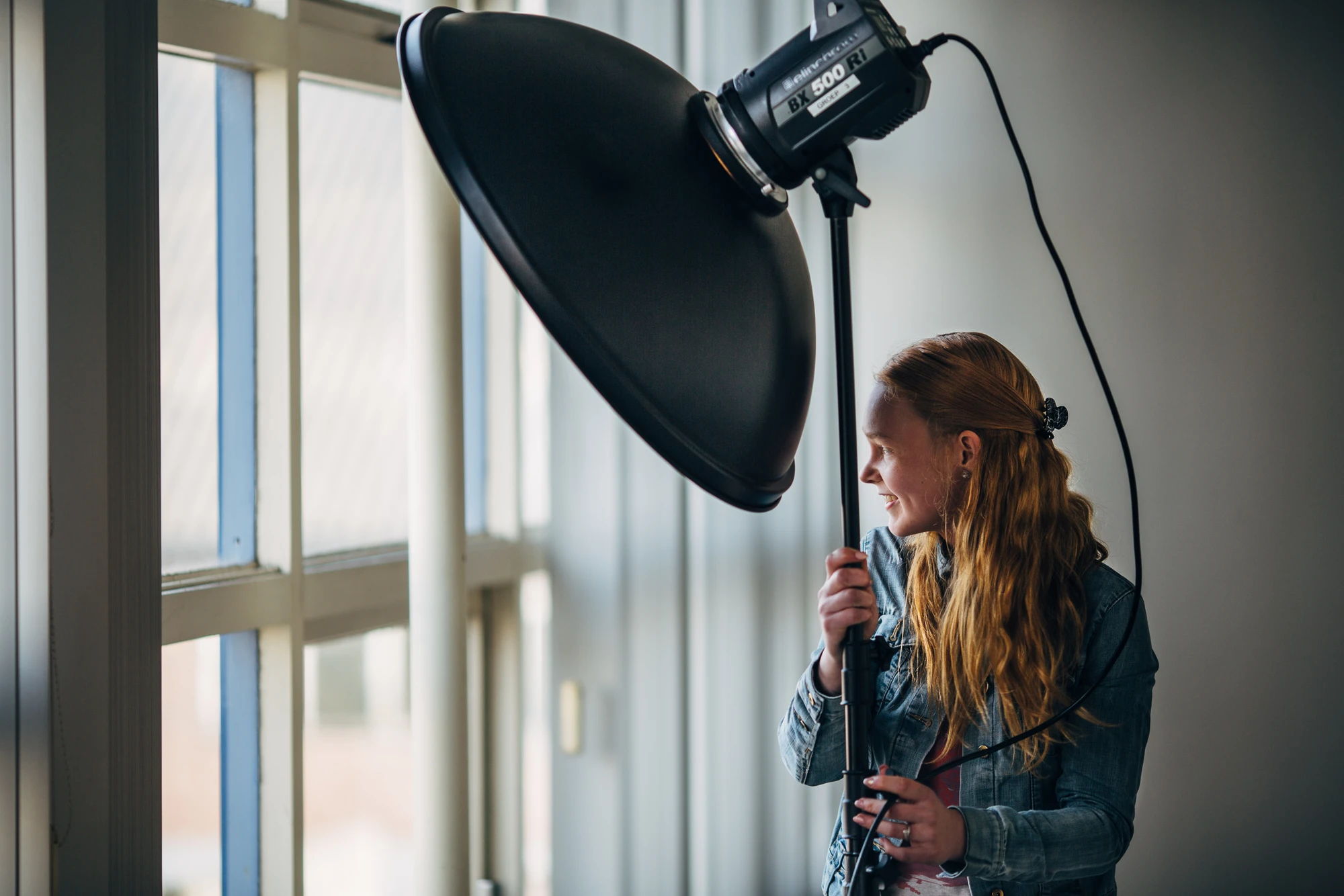 achter de lens.